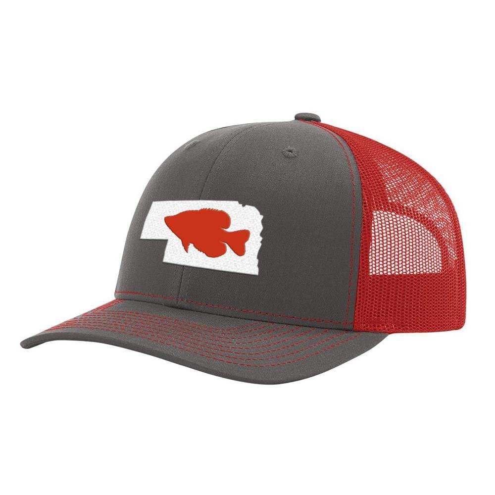 Nebraska Crappie Hat - Cardinal/red Leather Patch Hat, Trucker Snapback closure mesh Cap for Fishing Enthusiasts - Comfort Outdoor Gift Idea
